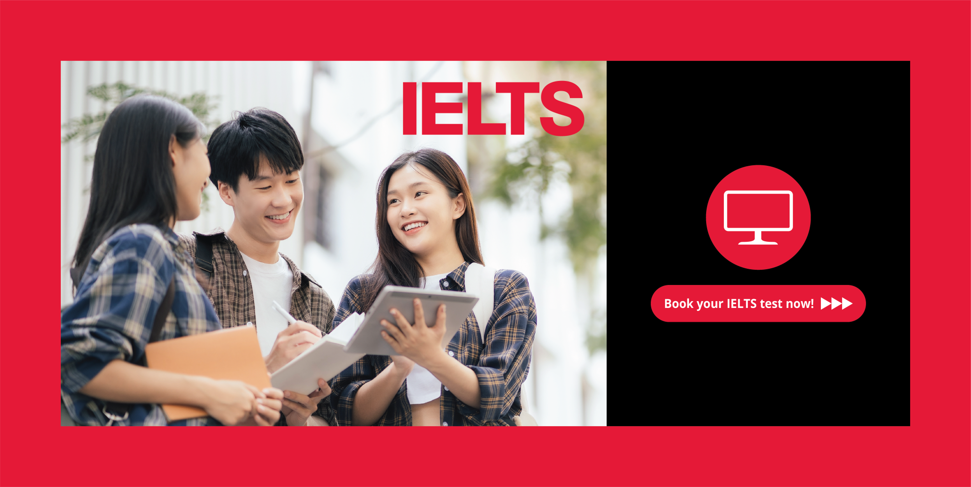 To register, simply click one of the “Book your IELTS test now!” buttons on this page and complete the online registration form. Ideally you should register at least two weeks before a test, although bookings are open until three days before the test date.